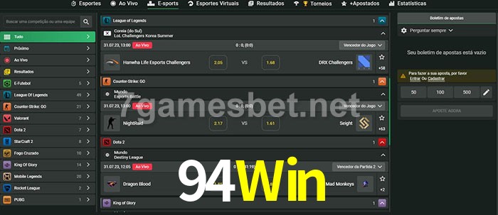 A aposta 94Win oferece aos jogadores a experiência mais conveniente de apostas em eSports!